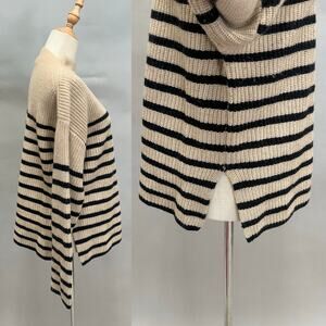 Rails Claudia Striped Sweater Mock Funnel Neck Camel/Black Size Medium