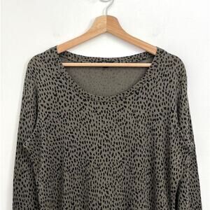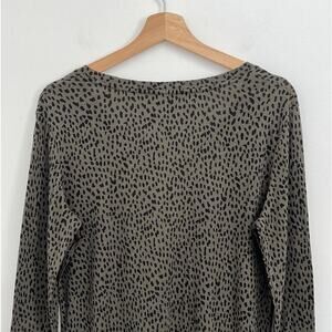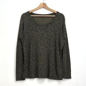 Rails Colby Linen-Blend Olive Mini Spotted Scoop Neck Long Sleeve Tee - Small