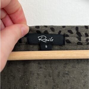 Rails Colby Linen-Blend Scoop Neck Long Sleeve Tee Olive Mini Spotted - Small