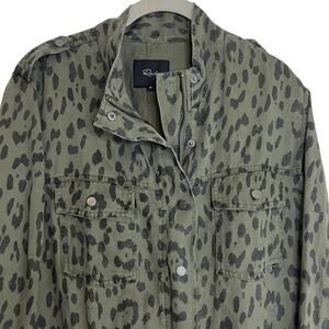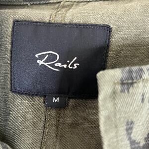 Rails Collins Jacket Womens Medium Green Leopard Print Utility Tencel Linen