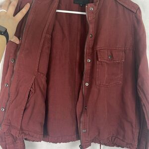 This is a great Rails Collins military burgundy lightweight zip up jacket! Pit to pit is 19 inches and shoulder to bottom hem is 22 inches. There is some slight snagging on the back of the jacket in the corner, please see last picture.
