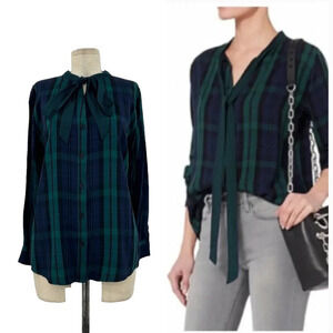 Rails Corrine Navy Blue and Green Plaid Patterned Button Down Shirt Size Small