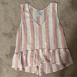 Rails Cream & Pink Striped Peplum Tank Top Size M