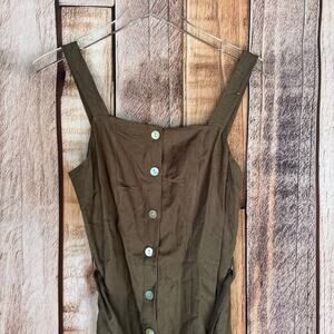Rails Dress Clement Button-Front Belted Midi Linen Blend Green Minimalist S NWT
