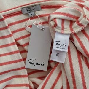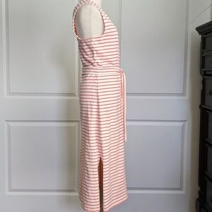 Rails Dress Midi Tie Waist Sleeveless 100% Cotton Knit Ivory Peony Stripe L NWT