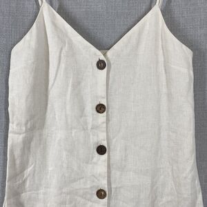 Notes: Classic linen sundress silhouette in a versatile cream/off-white tone