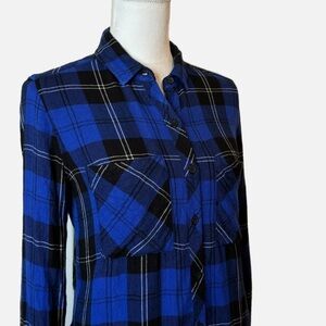 Rails Dylan Cobalt Tartan Plaid Button Down Cropped Shirt Small