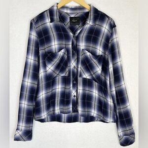 💙 Rails Dylan Oxford Navy Blue White Plaid Button Long Sleeve Crop Flannel…