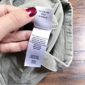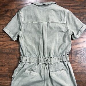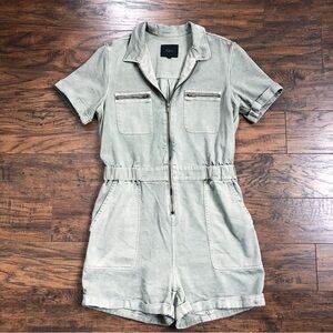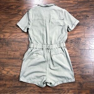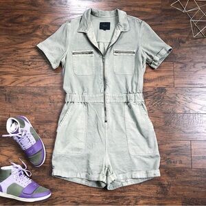 Adorable zip front romper by Rails, sold at Evereve and Nordstrom. “Effie Utility Romper” style in "Seagrass" (sage green) twill. Elastic waist, cuffed sleeves and hem, exposed zipper details on chest pockets and front. Bust 40“, waist 31-34“, hips 43“, length to crotch 21.5”, inseam 3”, cuff circumference 24“. Size M, excellent preowned condition.