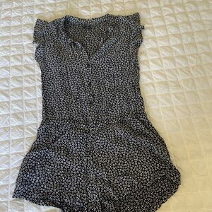 Stylish navy romper with white floral pattern. Features a classic design by Rails.