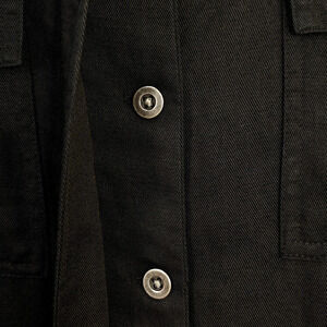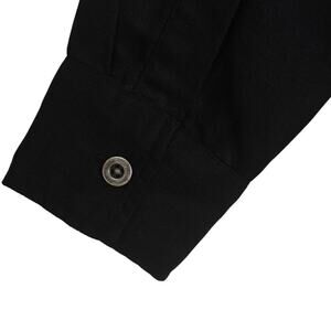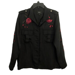 Rails Elliot embroidered button front utility shirt shacket in women's size XS. Black Tencel/linen blend with embroidered metallic roses. Long sleeves. Chest pockets. Shoulder epaulets. Metal buttons in concealed button placket. Gently pre-owned.