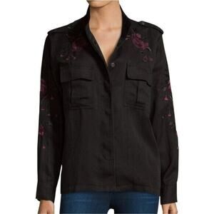 Rails Elliot Embroidered Utility Shirt Jacket Sz XS Black Metallic Roses Shacket