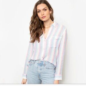 100% cotton, double gauze button-down up blouse with shell buttons.