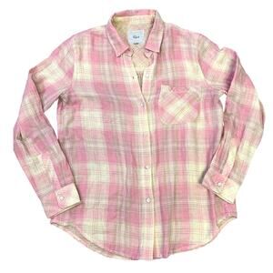 Rails Ellis Rose Sand Ivory Buttoned Down Shirt Sz S Organic Cotton Pink Plaid
