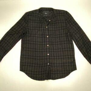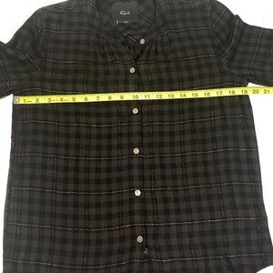 Rails Elosie Plaid Band Collar Button-Up Blouse - Onyx Lurex Size XS