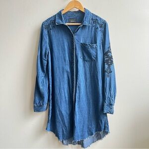 Rails Embroidered Boho long Sleeve Chambray Shirt Dress Womens Size Medium
