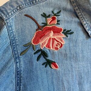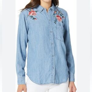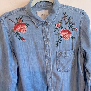 Rails Embroidered Floral Ingrid Rosebud Denim Shirt. Size S. Long sleeves denim chambray button down top with a single chest pocket and gorgeous floral embroidery details.