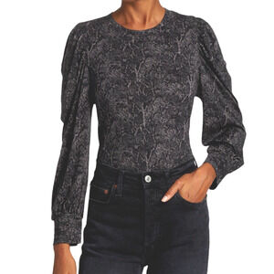 Rails Emilia Top Sz L Dark Snake Print Puff-Sleeve Cotton Modal Light Weight