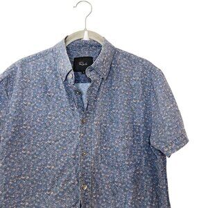 Rails Fairfax Shirt Mens sz S Knit Cotton Short Sleeve Blue Floral Button Front