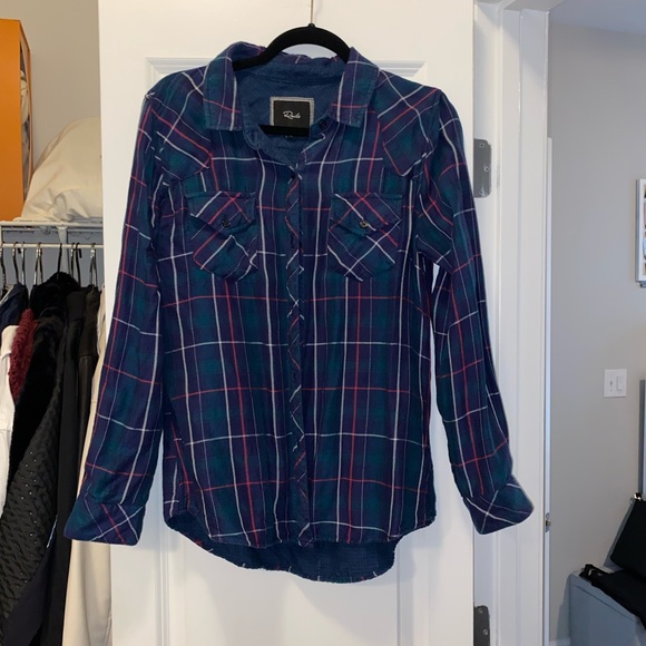 Plaid Rails flannel, navy blue/white/maroon, size medium. Good used condition. Super soft and comfy!!