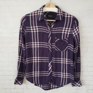 Rails Flannel Size Womens XS Hunter Navy Petal Pink Lightweight Rayon Plaid. Very good pre-owned condition, no flaws.