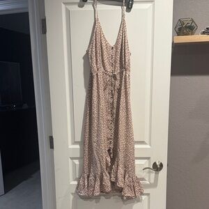 Chic Rails midi dress with floral pattern. Features a flattering V-neck and adjustable straps. Perfect for casual outings. 47 inches long in the back.
