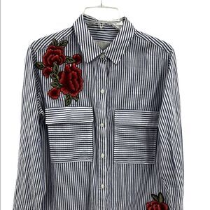 Rails Frances Stripe Banker Floral Patches Button Down Shirt Small Shacket