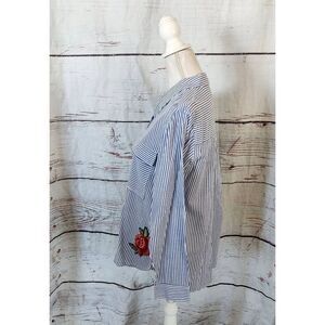 Rails Frances Banker Stripe with Floral Embroidery Patches Button Up Top Size Me