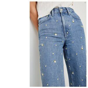 Our best-selling Getty style, just shorter. This jean features the same flattering Getty fit that cinches at the waist and flares from the leg, with an ankle-baring 27" inseam. Fabricated from comfortable, light-stretch denim with delicate daisy embroidery.