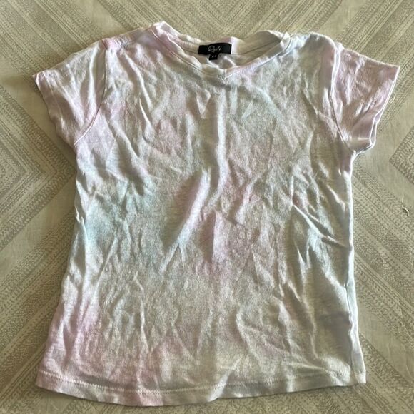 Rails Girls Light Faded Purple & Blue V Neck T-Shirt. Colors are very faint. Made of linen & tencel. Size 6-7.