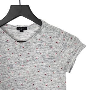 Rails Girls Linen T Shirt Top Heart Print Gray Red