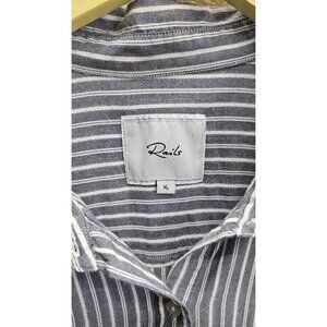 The Rails button down shirt offers a relaxed fit with a notched collar and 3/4 sleeves, perfect for a laid-back yet polished look. Crafted in a soothing gray and white palette, this top is ideal for casual outings or a smart-casual office setting. Its lightweight fabric ensures comfort throughout the day.