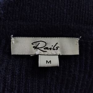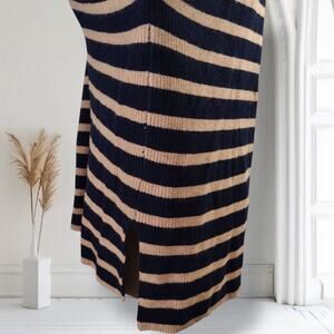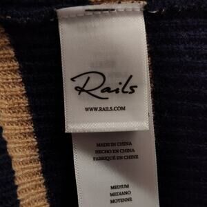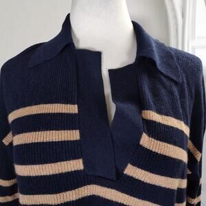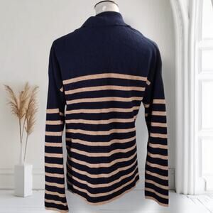 Rails Harris Merino Blend Sweater Size M Camel Navy Stripe Collared Neckline