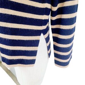 Rails Harris Sweater XS Blue Tan Stripe Merino Wool Blend Collar V-Neck Pullover