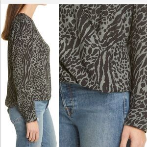 Rails Hillary animal mix print wrap front long sleeve blouse size XS; S; NWT