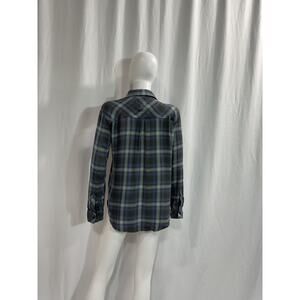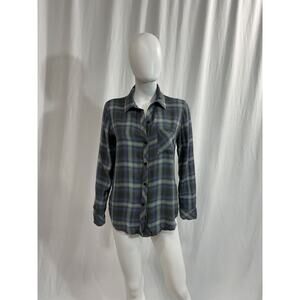 Rails 'Hunter' Blue Top Size S: front button closure, breast slip pocket, buttoned cuffs, shirttail hem.