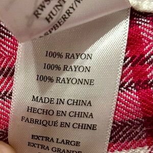 @rjmac34102 Hello! Material is 100% Rayon. Just a note- it must have been in the dryer before I received it because it fits a little smaller than an XL. Cat