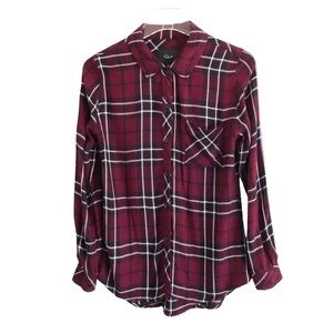 Rails Hunter Button Front Burgundy Plaid Long Sleeve Shirt XS