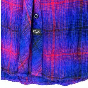 The iconic “Hunter” shirt from Rails blends laid-back comfort with elevated style. Made from the brand’s signature ultra-soft rayon blend, this button-up features a vibrant azure blue and scarlet red plaid, a relaxed fit, and a single chest pocket. Perfect for layering, casual days, or a polished weekend look.