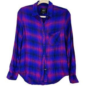 Rails Hunter Button-Up Flannel Shirt – Plaid Azure & Scarlet, Size XS