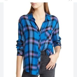 Rails Hunter Cabincore Cobalt Magenta Plaid Tartan Flannel Button Down Shirt S