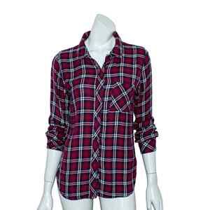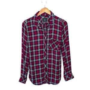 Rails Women's Button up Flannel Shirt Burgundy Red Plaid Rayon Size Small