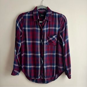 Button down long sleeve flannel Hunter shirt in navy rose and powder! Super soft fabric. In excellent condition.