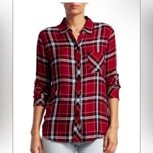 ✨ Pre-loved, great condition! Rails | Hunter Navy Red Plaid Button-Up Long Sleeve Shirt- Very soft and lightweight, this vintage-style plaid shirt is made of 100% rayon with Point collar, Long sleeves, Button cuffs, Chest patch pocket, and Curved hem.