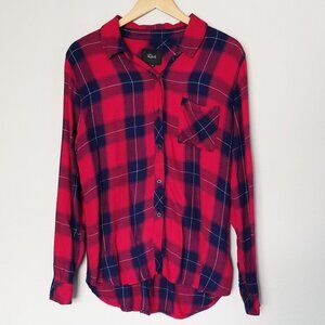 Rails Hunter Plaid Button Down Flannel Shirt M Ruby Navy Check Soft Cozy $178