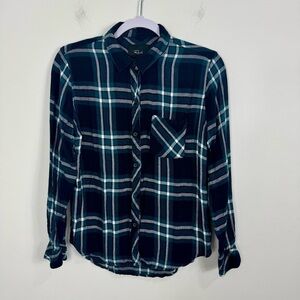 Rails Hunter Plaid Front Button Closure Shirt Blue Green Size Small SM S