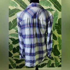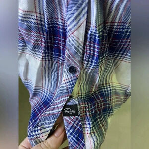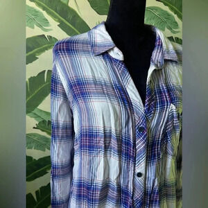 Rails Hunter Plaid Long Sleeve Button Down Blouse Size M white blue