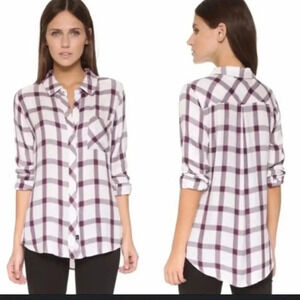 Rails Hunter Plaid Long Sleeve Flannel Button Down Blouse XS White Blue
