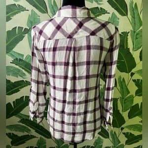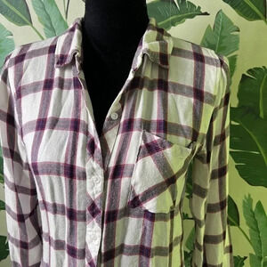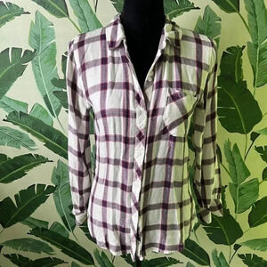 Rails Plaid Long Sleeve Flannel Button Down Blouse XS White Blue
