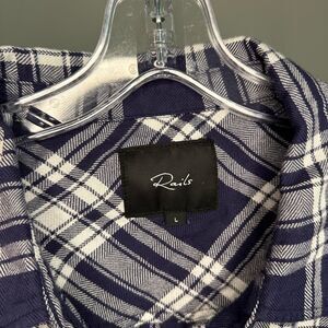 Rails Hunter Plaid Navy Blue Rayon Western Grunge Shirt Blouse Sz L
